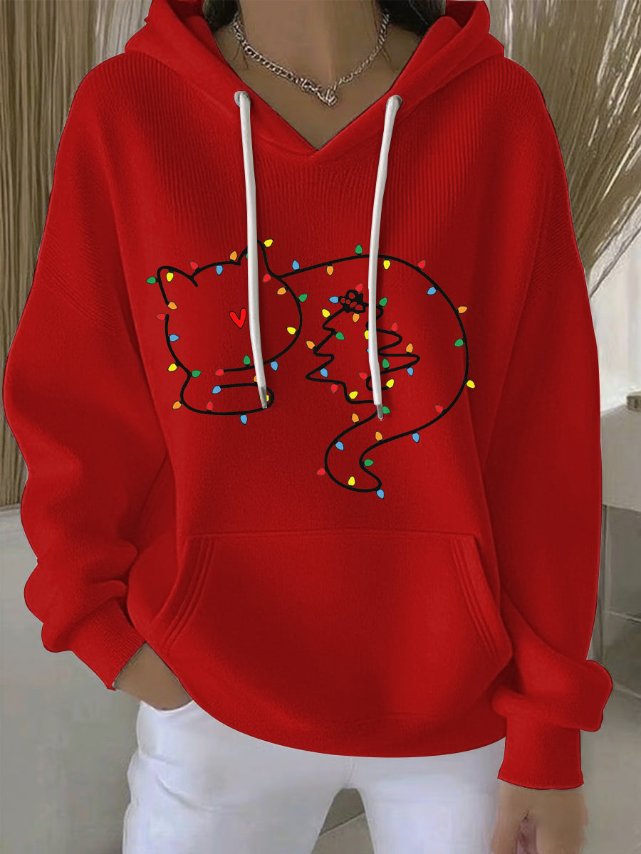 Sweat à capuche décontracté imprimé Noël pour femmes