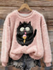 Sweat à capuche en flanelle pour femmes Funny Fuzzy Black Cat