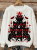Sweat à Capuche Femme Chat Noir Arbre de Noël En Flanelle