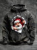 Sweat à Capuche Homme Noir Déchirant Imprimé Père Noël