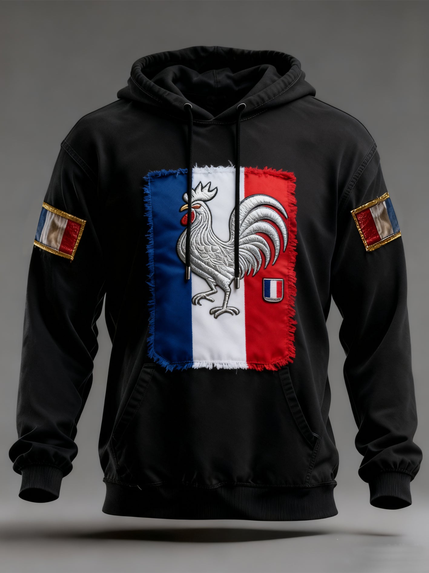 Sweat à capuche surdimensionné à épaules dénudées avec poches pour hommes, drapeau français vintage