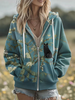 Sweat à capuche zippé imprimé chat mignon pour femmes