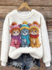 Sweat-shirt en flanelle à imprimé chat mignon pour femmes