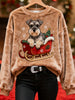 Sweat-shirt en flanelle décontracté imprimé Schnauzer de Noël pour femmes