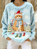 Sweat-shirt en flanelle imprimé chat de Noël vintage femme