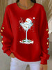 Sweat-shirt Femme Imprimé Bonhomme de Neige de Noël Côtelé Col Rond