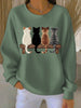 Sweat-shirt Femme Quatre adorables chat silhouette imprimé côtelé Col Rond