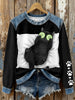 Sweat-shirts pour masque facial à imprimé chat noir pour femme