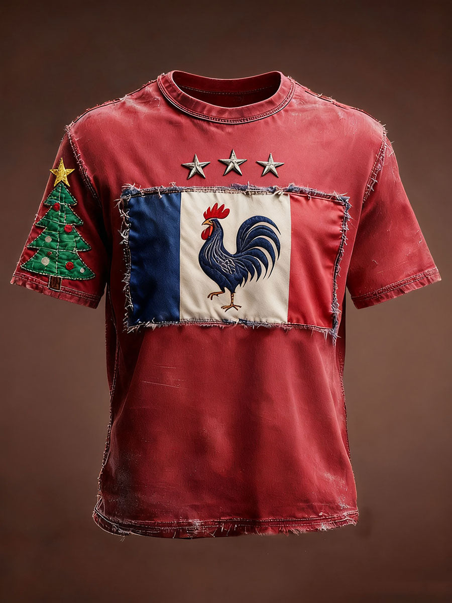 T-shirt à manches courtes Drapeau Français Le Coq Gaulois Noël Homme