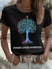 T-shirt de sensibilisation au cancer de l'ovaire imprimé arbre à ruban sarcelle pour femme