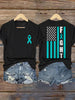 Teal Ribbon USA Flag Combat T-shirt de soutien de sensibilisation au cancer de l'ovaire pour femmes