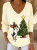 Top décontracté à manches longues imprimé animal de Noël vintage pour femmes