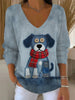 Top décontracté à manches longues rétro imprimé animal pour femmes