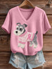 Top en tricot confortable à col en V pour femmes en feutre Art Schnauzer Pattern