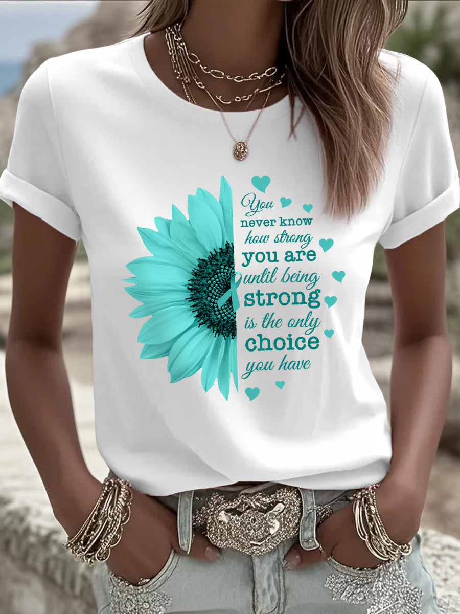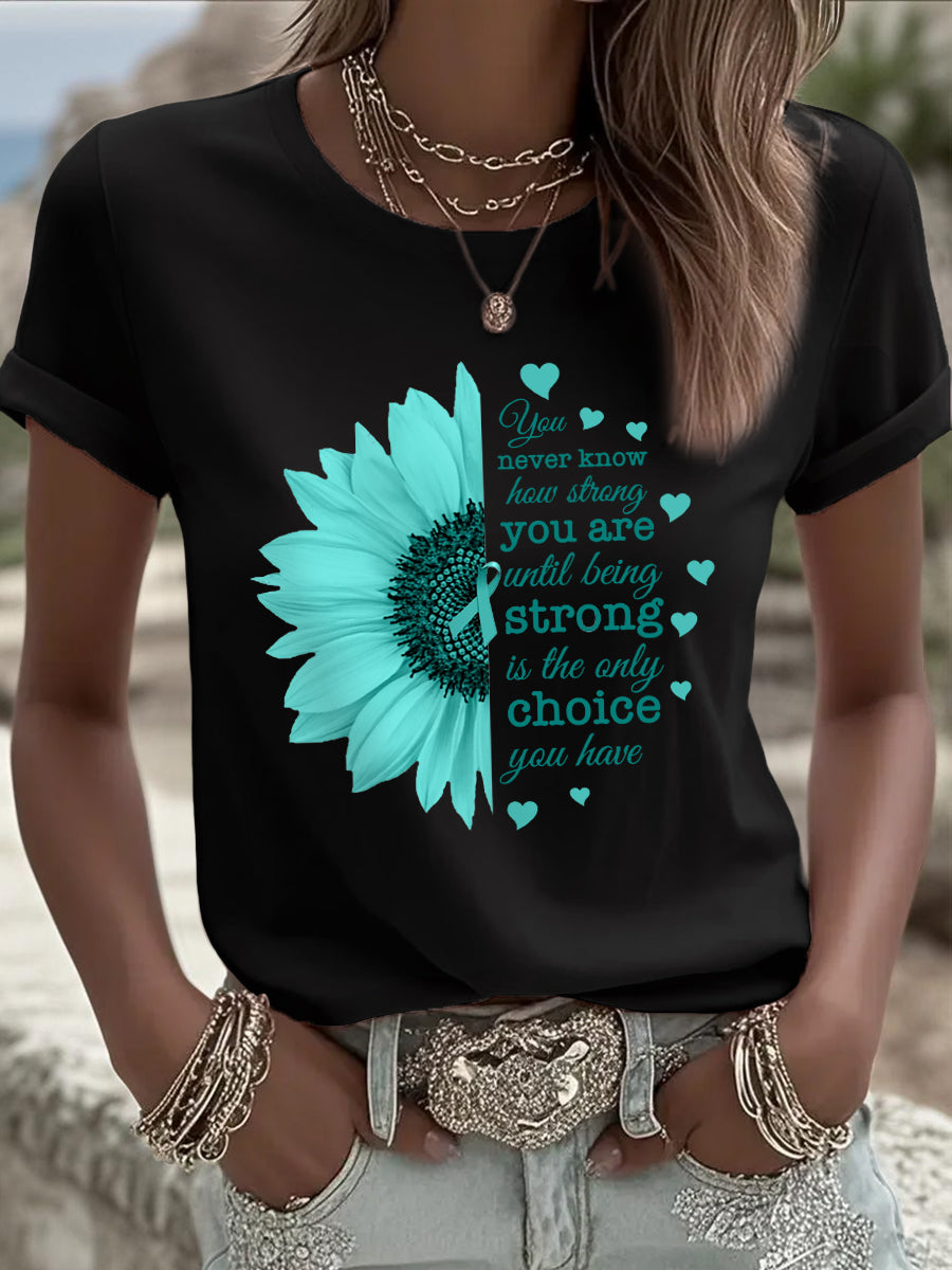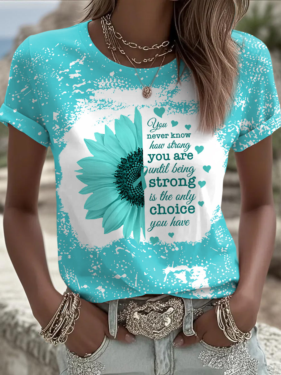 Tournesol Sarcelle Ruban Imprimer Cancer de l'ovaire Sensibilisation Tee