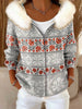 Veste à capuche décontractée à motif floral Fair Isle bordée de fourrure pour femme