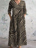Vintage Art Print Chic col V trois quarts manches élégante robe Midi